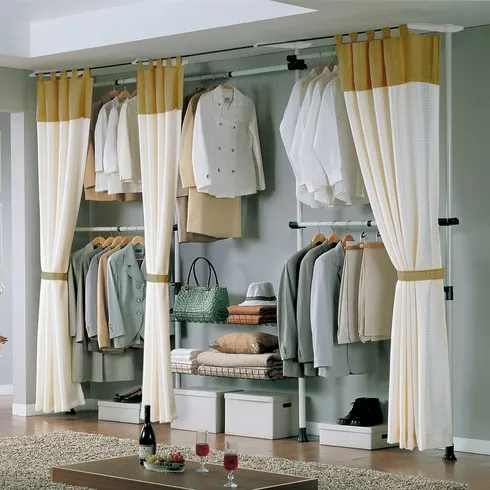 Montheria 조립식 커튼 스텐드 행거 무볼트 가벼운 수납 옷장 선반형 비키니옷장 A606-028, 109*45*166서랍 포함, 화이트
