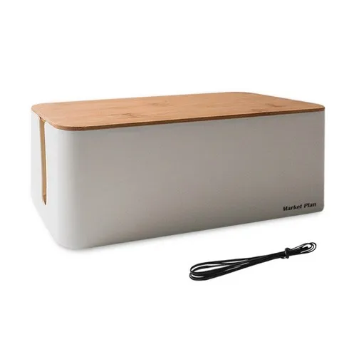 마켓플랜 심플 멀티탭 정리함 대형, 우드 화이트, 1개