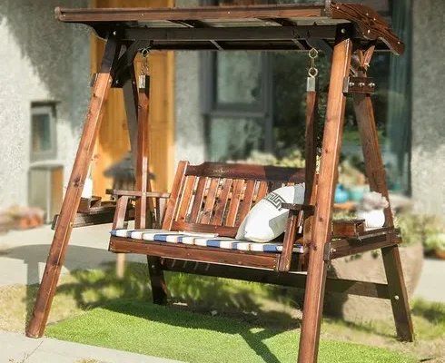 미엔우드 정품 지붕형 야외 원목 그네 3인용 야외용 흔들 의자 정원 카페 놀이터, 월넛색