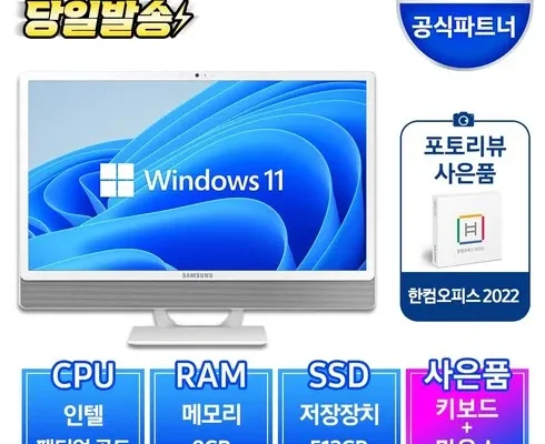 삼성전자 올인원 일체형 PC 프로스트 화이트 DM530ADA-L25A (펜티엄골드 7505 60.5cm WIN11 Pro) 기업용 사무용 학습용, RAM 8GB + SSD 512GB